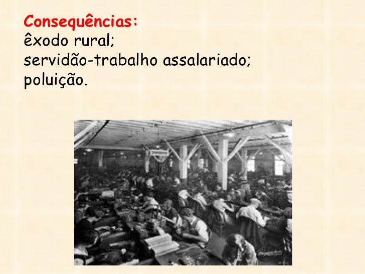 14. 14. Consequências:êxodo rural;servidão-trabalho assalariado;poluição.