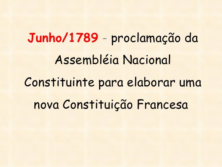 21. 21. Junho/1789 - proclamação da Assembléia NacionalConstituinte para elaborar uma nova Constituição Francesa