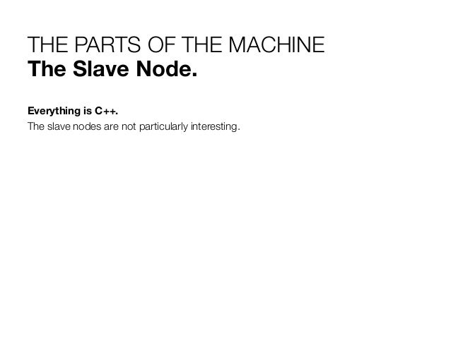 16. 16. THE PARTS OF THE MACHINE The Slave Node. Everything is C++. The slave nodes are not particularly interesting.