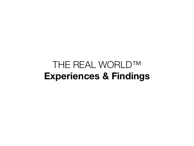 32. 32. THE REAL WORLD™ Experiences & Findings
