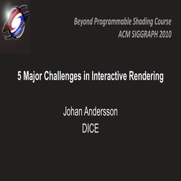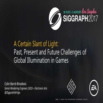 so to understand where we are coming from, If we turn the clock back about ten years. it might be hard to recall but it used to be that there were no shadows at all. everything was just lit ambiently, and maybe by a few point lights but then techniques like shadow maps, stencil shadows and lightmaps started showing up and suddenly there were shadows and this has been working very well for games ever since but as everything else has improved dramatically, the basic lighting model has remained pretty much the same and maybe that was fine a few years ago But with everything else starting to look so good it becomes increasingly obvious that there is something missing from most games it's like the uncanny valley of lighting models. everything else is looking increasingly convicing but most people can tell there's something wrong with what they are looking at and as we were in prototyping three years ago our art team realized that. and we came to the conclusion that what we wanted was some form of realistic lighting or global illumination But instead of telling you what global illumination actually is I’m just going to show you some real life examples 02/10/10 23:05