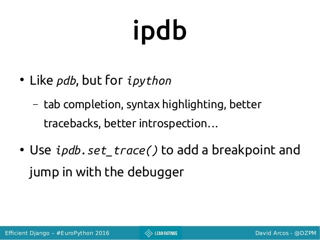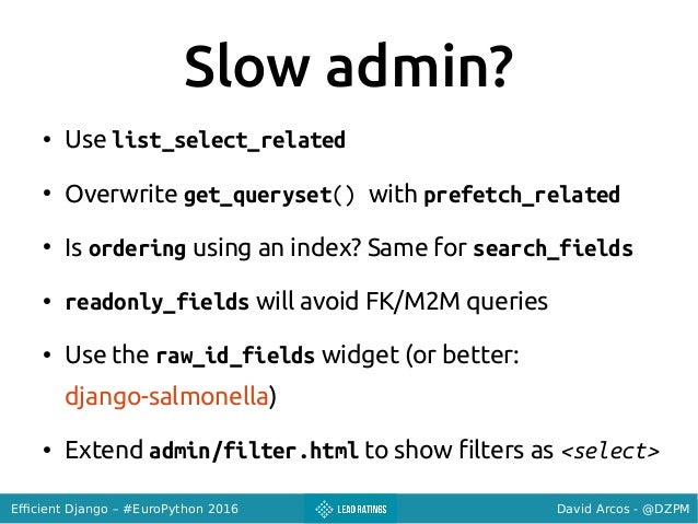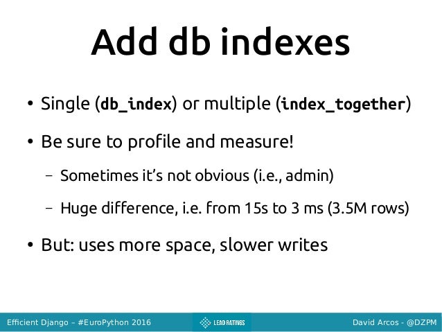 Talk given at #EuroPython 2016: https://ep2016.europython.eu/conference/talks/efficient-django
