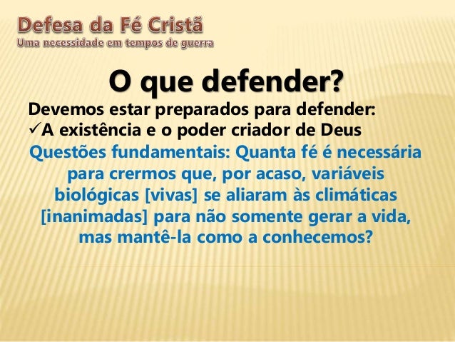 Conjunto de slides para o despertamento apologético de jovens. São postos alguns temas introdutórios de enriquecimento no assunto.