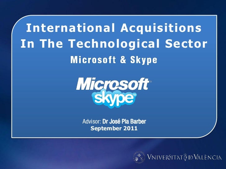 Final Master's Thesis about Microsoft's Skype acquisition. On may 2011, Microsoft agreed to buy Skype for $8.5 billion dollars, making it, Microsoft's largest acquisition.