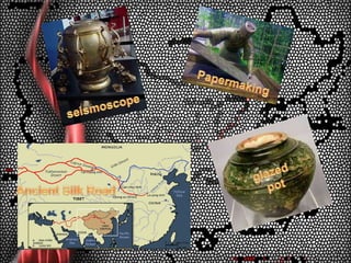 12. 12. Seismoscope (Zhang Heng - 132 AD)</li></li></ul><li>Papermaking<br />seismoscope<br />glazed<br /> pot<br />Ancient Silk Road<br />