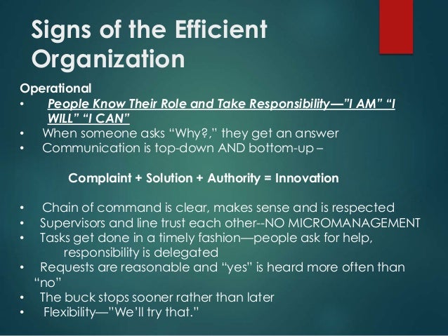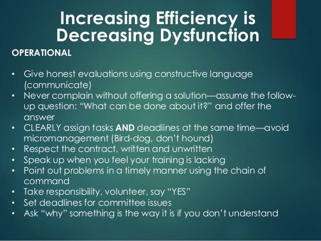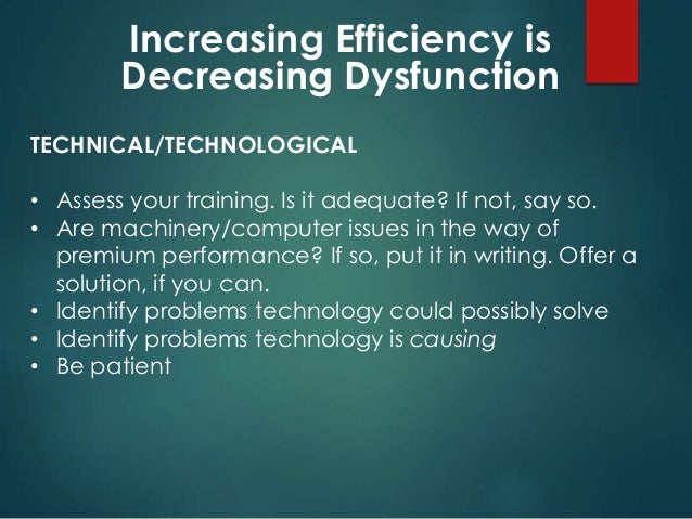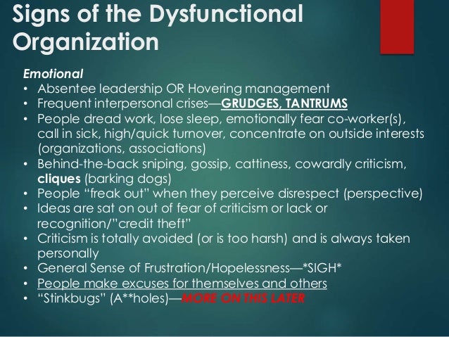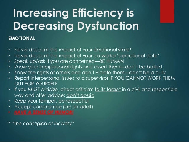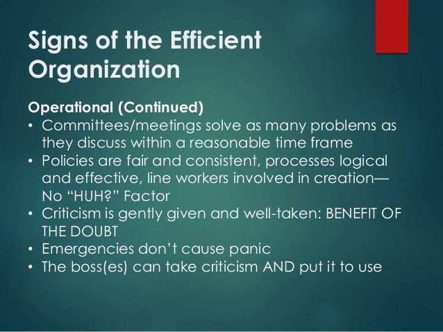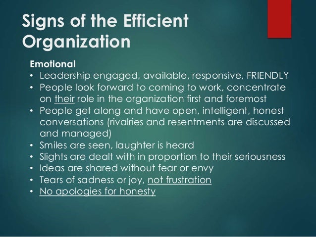 What are the earmarks of an efficient organization? A dysfunctional one? What kind of worker behaviors and emotional states hurt efficiency and how can those workers be coached to improve?