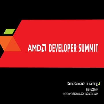 21. 21. | GCN PERFORMANCE „FTW“ | AMD AND MICROSOFT GAME DEVELOPER DAY - JUNE 2 2014, STOCKHOLM21 DISCLAIMER & ATTRIBUTION The information presented in this document is for informational purposes only and may contain technical inaccuracies, omissions and typographical errors. The information contained herein is subject to change and may be rendered inaccurate for many reasons, including but not limited to product and roadmap changes, component and motherboard version changes, new model and/or product releases, product differences between differing manufacturers, software changes, BIOS flashes, firmware upgrades, or the like. AMD assumes no obligation to update or otherwise correct or revise this information. However, AMD reserves the right to revise this information and to make changes from time to time to the content hereof without obligation of AMD to notify any person of such revisions or changes. AMD MAKES NO REPRESENTATIONS OR WARRANTIES WITH RESPECT TO THE CONTENTS HEREOF AND ASSUMES NO RESPONSIBILITY FOR ANY INACCURACIES, ERRORS OR OMISSIONS THAT MAY APPEAR IN THIS INFORMATION. AMD SPECIFICALLY DISCLAIMS ANY IMPLIED WARRANTIES OF MERCHANTABILITY OR FITNESS FOR ANY PARTICULAR PURPOSE. IN NO EVENT WILL AMD BE LIABLE TO ANY PERSON FOR ANY DIRECT, INDIRECT, SPECIAL OR OTHER CONSEQUENTIAL DAMAGES ARISING FROM THE USE OF ANY INFORMATION CONTAINED HEREIN, EVEN IF AMD IS EXPRESSLY ADVISED OF THE POSSIBILITY OF SUCH DAMAGES. ATTRIBUTION © 2013 Advanced Micro Devices, Inc. All rights reserved. AMD, the AMD Arrow logo and combinations thereof are trademarks of Advanced Micro Devices, Inc. in the United States and/or other jurisdictions. Other names are for informational purposes only and may be trademarks of their respective owners.