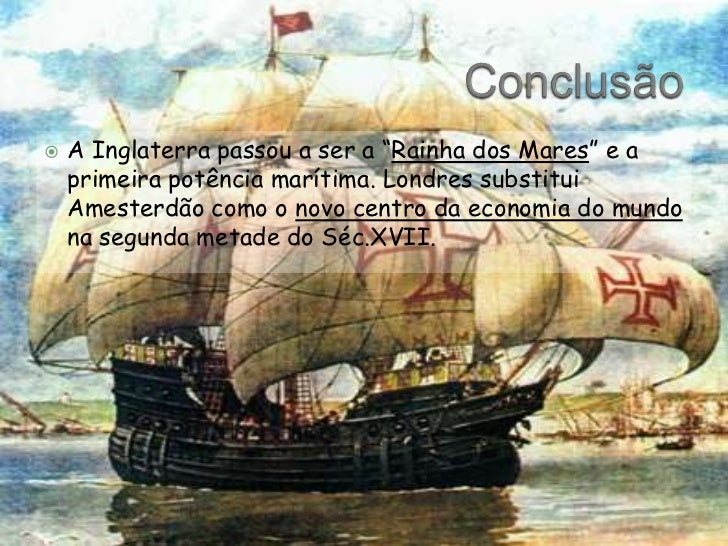 Conclusão<br />A Inglaterra passou a ser a “Rainha dos Mares” e a primeira potência marítima. Londres substitui Amesterdão...