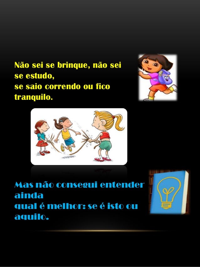 4. 4. Não sei se brinque, não sei se estudo, se saio correndo ou fico tranquilo. Mas não consegui entender ainda qual é melhor: se é isto ou aquilo.