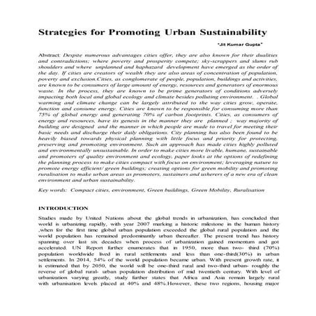 This presentation from Ani Dasgupta, Global Director, WRI Ross Center for Sustainable Cities, explores real-world examples of how change has been made in some of the fastest growing cities and economies of the world and discuss actions to ensure sustainable urbanization in the years and decades ahead.