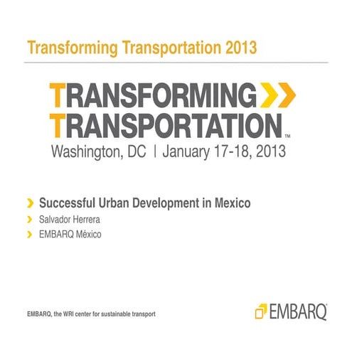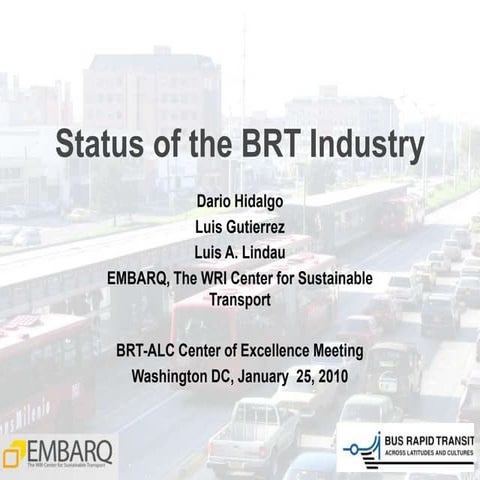 Transit reform in Bogota Colombia, Mexico, Brazil, through the example of Bus Rapid Transit (BRT). Presented at the World Bank Sustainable Development Network “Transport Days” on Feb. 27, 2013 by Dario Hidalgo, PhD, Director Research and Practice, EMBARQ.