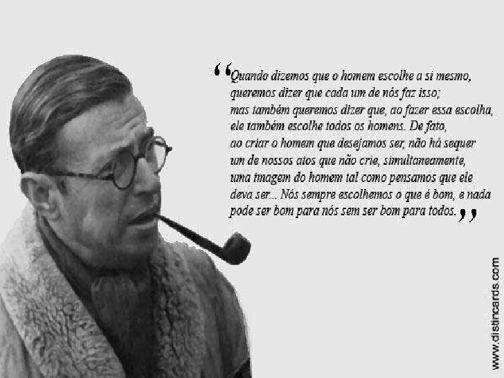 18. 18. “ O homem deve criar a sua própria essência; é jogando-se no mundo, lutando, que aos poucos se define... A angústia, longe de oferecer obstáculos à ação, é a própria condição dela... O homem só pode agir se compreender que conta exclusivamente consigo mesmo, que está sozinho e abandonado no mundo, no meio de responsabilidades infinitas, sem auxílio nem socorro, sem outro objetivo além do que der a si próprio, sem outro destino além de forjar para si mesmo aqui na terra”.
