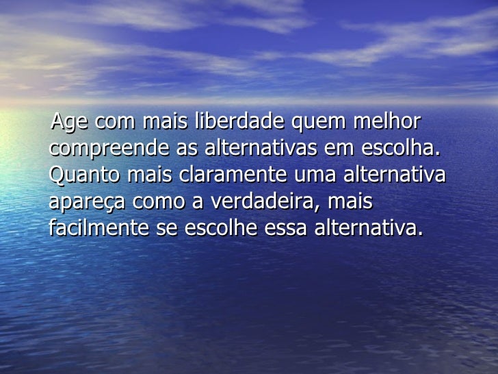 7. 7. <ul><li>Age com mais liberdade quem melhor compreende as alternativas em escolha. Quanto mais claramente uma alternativa apareça como a verdadeira, mais facilmente se escolhe essa alternativa. </li></ul>