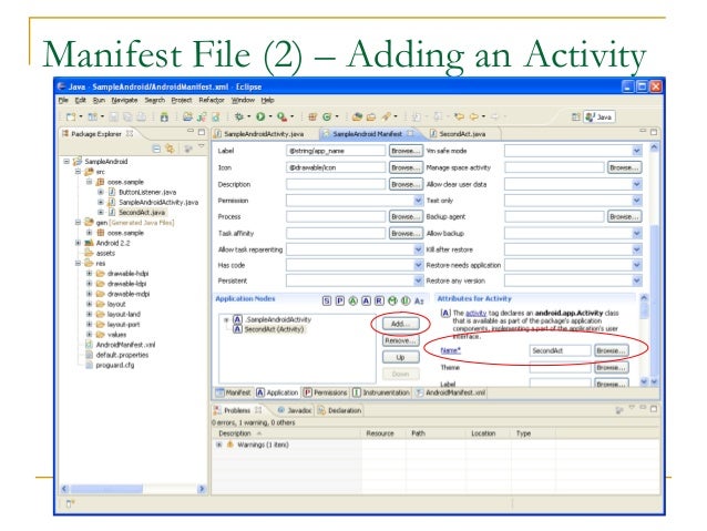 22. 22. Manifest File (2) – Adding an Activity
