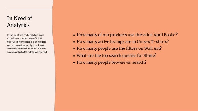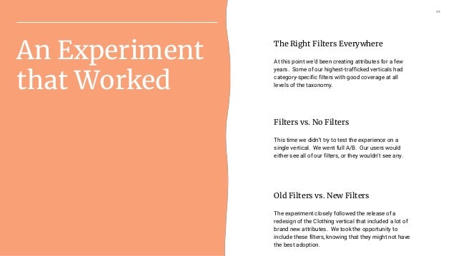 IA projects often need approval from gatekeepers who don’t fully understand your complex project. In this talk, a product manager & a taxonomist will present a case study of the tools they used to convince designers, engineers, and analysts to buy into a complex data & IA project. Learn how a team of 4 people with no engineers or designers made a business case to launch sitewide filters on Etsy.com.