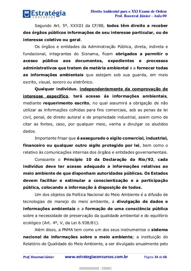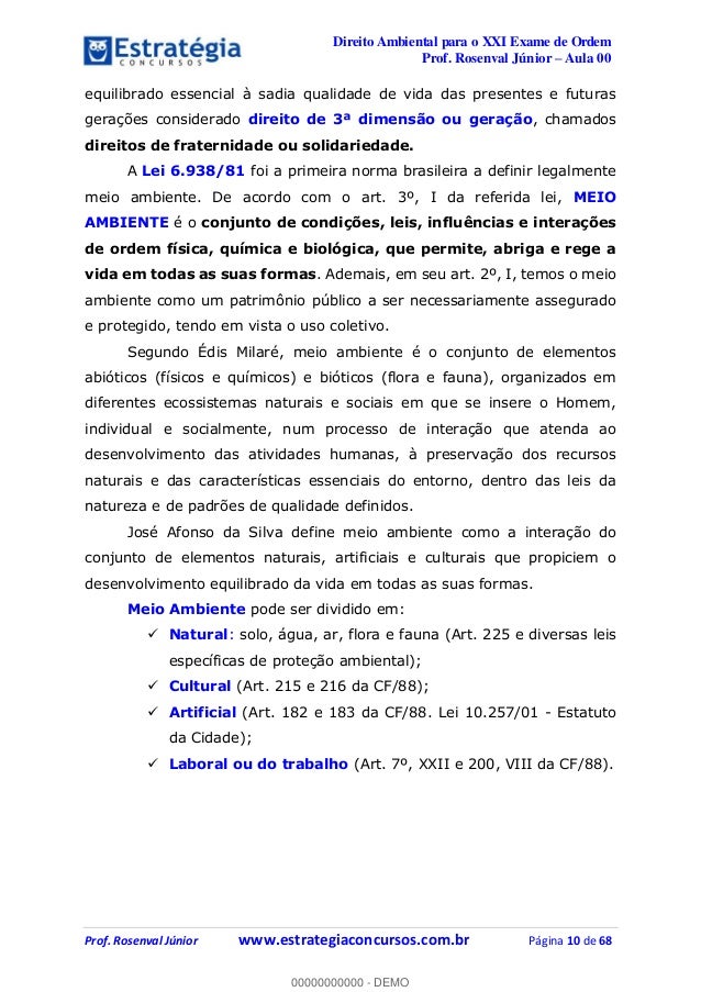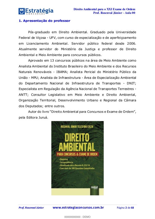 Aula demonstrativa do Curso de Direito Ambiental para XXI Exame de Ordem OAB - 1ª fase. Veja mais cursos e dicas de estudo em nosso site: www.estrategiaoab.com.br