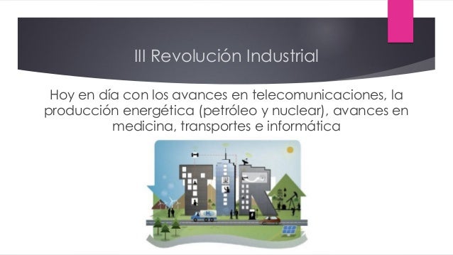 12. 12. III Revolución Industrial Hoy en día con los avances en telecomunicaciones, la producción energética (petróleo y nuclear), avances en medicina, transportes e informática