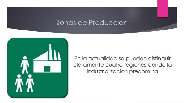 19. 19. Zonas de Producción En la actualidad se pueden distinguir claramente cuatro regiones donde la industrialización predomina