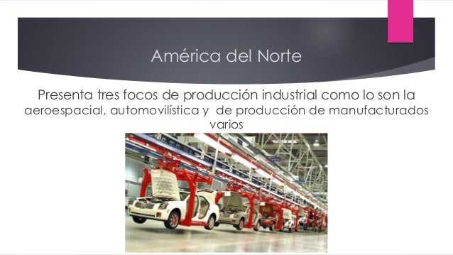 23. 23. América del Norte Presenta tres focos de producción industrial como lo son la aeroespacial, automovilística y de producción de manufacturados varios