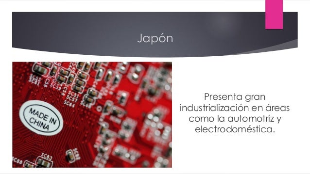 28. 28. Japón Presenta gran industrialización en áreas como la automotriz y electrodoméstica.
