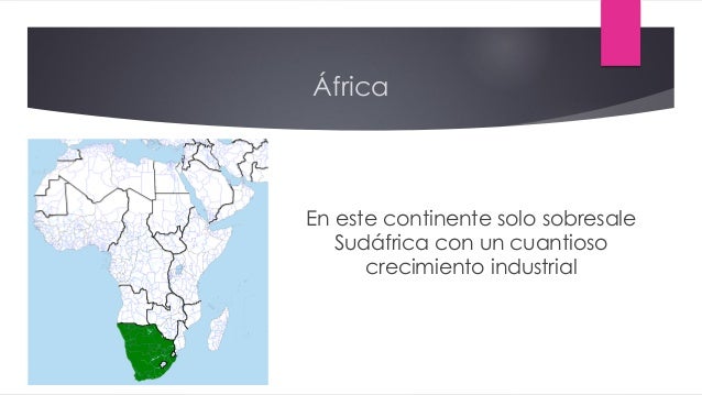 33. 33. África En este continente solo sobresale Sudáfrica con un cuantioso crecimiento industrial