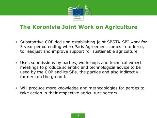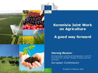 1. 1. Koronivia Joint Work on Agriculture A good way forward Herwig Ranner DG Agriculture and Rural Development, Unit D4 – Environment, Climate Change, forestry and bio- economy European Commission Brussels 21 February 2018