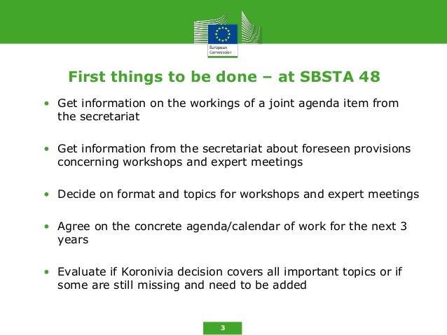 3. 3. 3 First things to be done – at SBSTA 48 • Get information on the workings of a joint agenda item from the secretariat • Get information from the secretariat about foreseen provisions concerning workshops and expert meetings • Decide on format and topics for workshops and expert meetings • Agree on the concrete agenda/calendar of work for the next 3 years • Evaluate if Koronivia decision covers all important topics or if some are still missing and need to be added