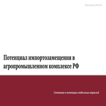 12. 12. Анализ национальной экспортной стратегии 1 • Программа сосредоточена на развитии предприятий и выпуске конкурентоспособной продукции • Основные инвестиции в реализацию Программы осуществляет частный сектор экономики (более 80%) • Программа направлена на увеличении экспорта экономки в целом и рассматривает АПК как один из приоритетных секторов • Содержание данной Программы не описывает меры по эффективному продвижению агропродоволь- ственной продукции на внешние рынки • В Программе не рассмотрены вопросы маркетинговых коммуникаций и мероприятий по анализу потенциальных потребностей внешнего рынка • Не отображена четкая направленность экспорта агропромышленной продукции