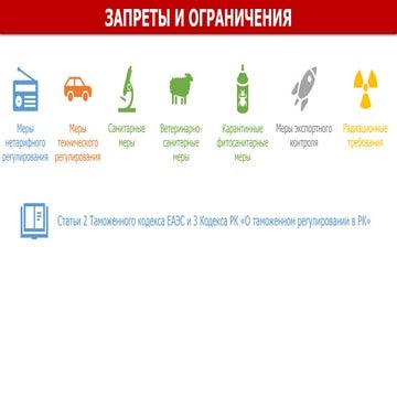 6. 6. ПОЛИТИКА ОТНОСИТЕЛЬНО ИМПОРТА  Продление до конца 2017 года применения импортных тарифов наибольшего благоприятствования для импорта товаров, страной происхождения которых является Российская Федерация.  Продление эмбарго на ввоз российских сельскохозяйственных товаров до 31 декабря 2017 года.  Введение с 20.06.2017 антидемпинговых пошлин в размере 31,3% сроком на 5 лет на шоколад и другие готовые пищевые продукты с содержанием какао производства РФ. 6