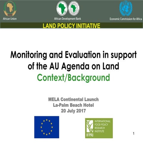 6. 6. 7th Capitalization Meeting EU Land Governance Programme Country Level Programmes Date Country Activity Uganda VGGT training at District Level/ Interoperability of the NLIS Cameroon Parliamentary meeting Ghana Annual Fisheries Policy Dialogue Legal Assessment Sudan Capacity Assessment Legal Assessment Capacity Development Kenya Land Registry/ Policy Assessment??? Guinea Bissau Policy Dialogue Malawi Capacity Development/ Enabling technology Colombia Under discussion