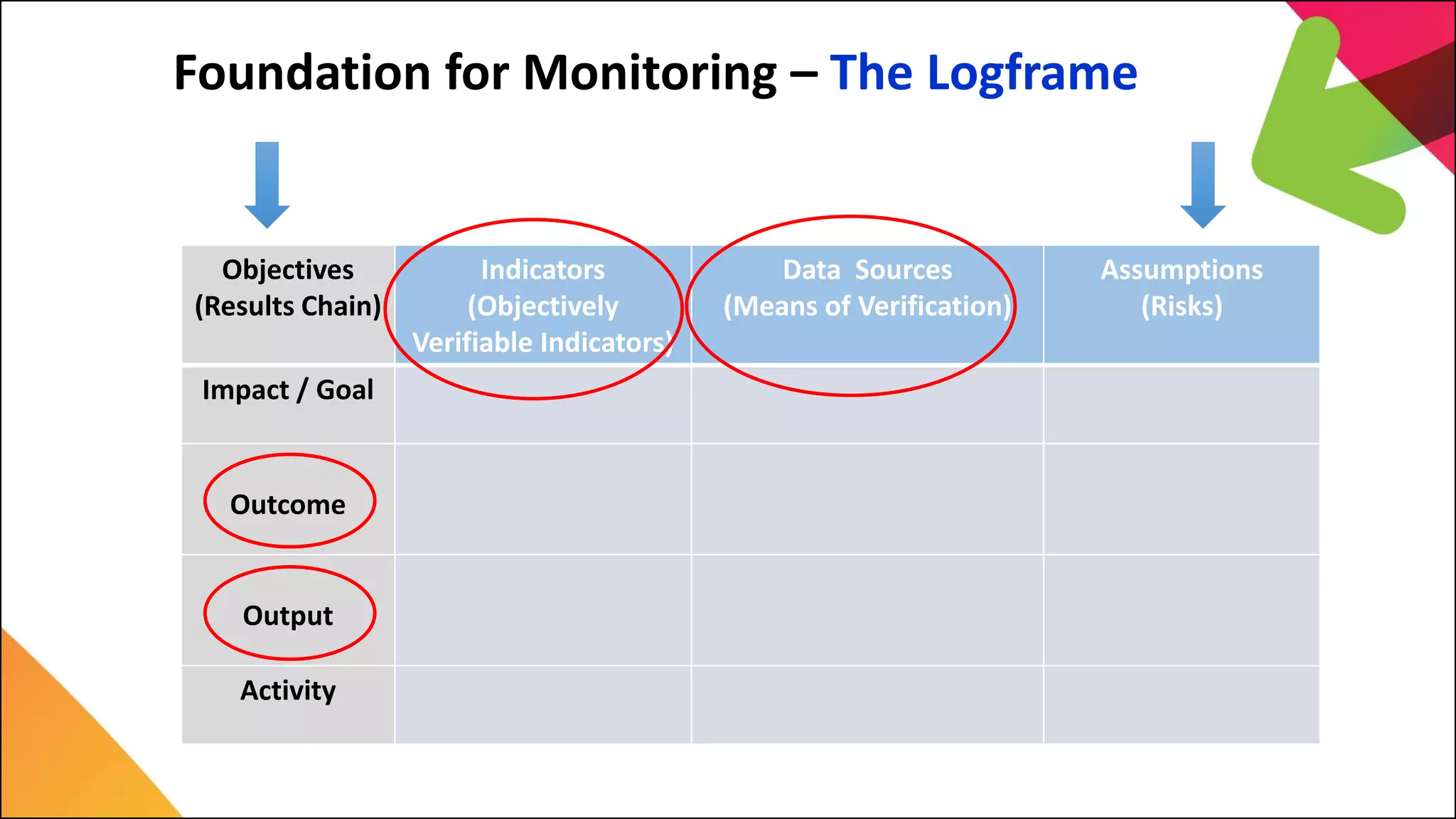 5. 5. 7th Capitalization Meeting EU Land Governance Programme Foundation for Monitoring – The Logframe Objectives (Results Chain) Indicators (Objectively Verifiable Indicators) Data Sources (Means of Verification) Assumptions (Risks) Impact / Goal Outcome Output Activity