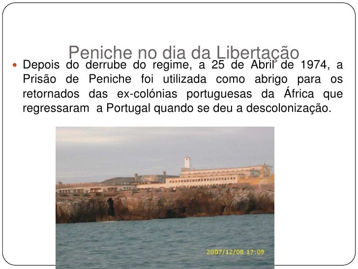 18. 18. Peniche no dia da Libertação<br />Depois do derrube do regime, a 25 de Abril de 1974, a Prisão de Peniche foi utilizada como abrigo para os retornados das ex-colónias portuguesas da África que regressaram a Portugal quando se deu a descolonização.<br />