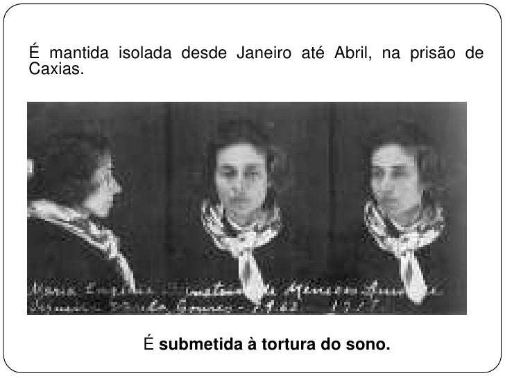 36. 36. É mantida isolada desde Janeiro até Abril, na prisão de Caxias.<br />É submetida à tortura do sono. <br />