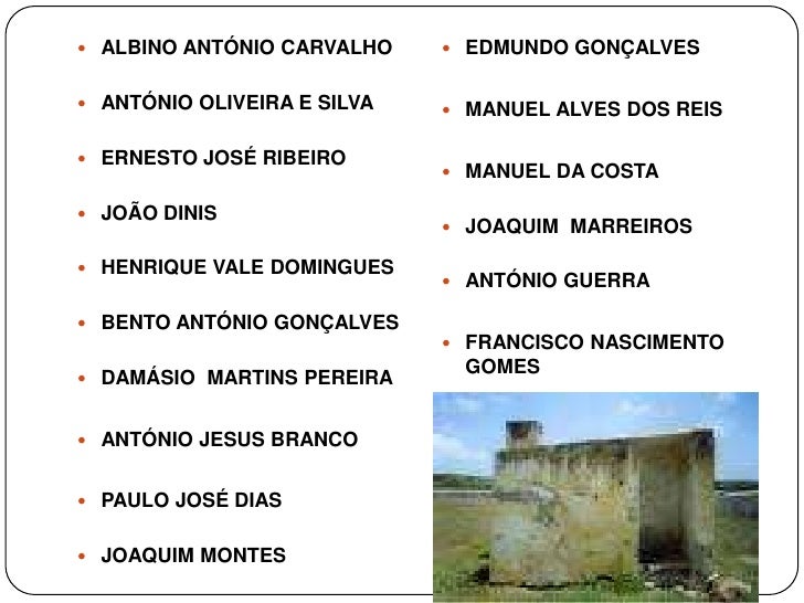 59. 59. ALBINO ANTÓNIO CARVALHO<br />ANTÓNIO OLIVEIRA E SILVA<br />ERNESTO JOSÉ RIBEIRO<br />JOÃO DINIS<br />HENRIQUE VALE DOMINGUES<br />BENTO ANTÓNIO GONÇALVES<br />DAMÁSIO  MARTINS PEREIRA<br />ANTÓNIO JESUS BRANCO<br />PAULO JOSÉ DIAS<br />JOAQUIM MONTES<br />EDMUNDO GONÇALVES<br />MANUEL ALVES DOS REIS<br />MANUEL DA COSTA<br />JOAQUIM  MARREIROS<br />ANTÓNIO GUERRA<br />FRANCISCO NASCIMENTO GOMES<br />