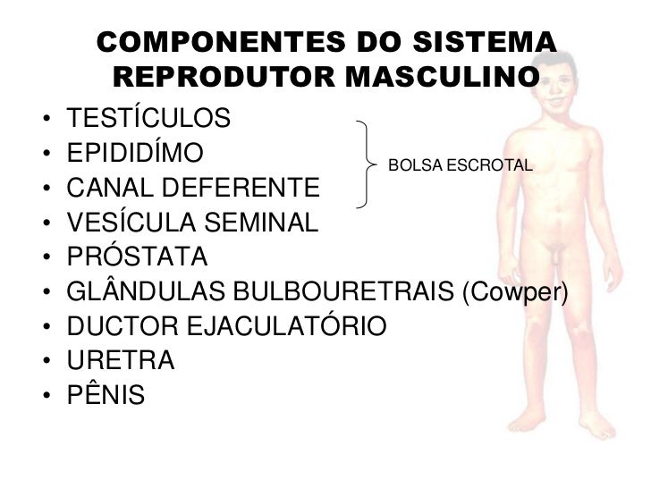1. 1. COMPONENTES DO SISTEMA REPRODUTOR MASCULINO• TESTÍCULOS• EPIDIDÍMO BOLSA ESCROTAL• CANAL DEFERENTE• VESÍCULA SEMINAL• PRÓSTATA• GLÂNDULAS BULBOURETRAIS (Cowper)• DUCTOR EJACULATÓRIO• URETRA• PÊNIS