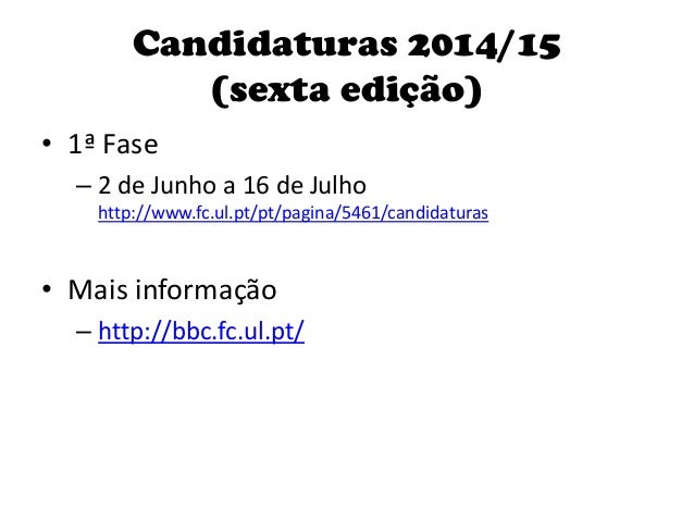 Sessão de Apresentação do Mestrado em Bioinformática e Biologia Computacional, dia 6 de Maio de 2014 às 16h30 no Anfiteatro da FFCUL