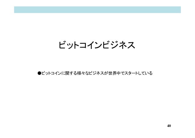 40. 40. 40 ビットコインビジネス ●ビットコインに関する様々なビジネスが世界中でスタートしている