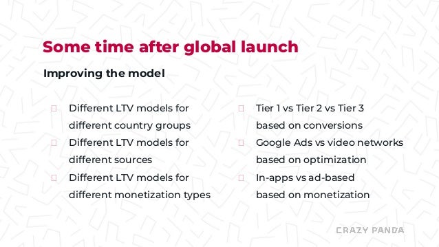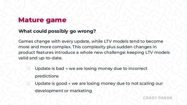 Whole way of developing and maintaining an LTV model for Crazy Panda game starting from the very rough extrapolation models at the soft launch to more accurate user-based Machine Learning models for mature products. Moreover, we will peek into the main obstacles on our way and how to overcome them. How is LTV calculation different for new games at soft launch phase vs mature products?