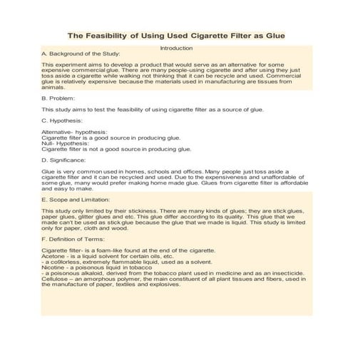 8. 8. Scope and Limitations Our research and experiments are only limited to making a simple ink as a colorant. It does not include inks that are used in machines such as printers, copiers, etc. Also, our study includes the effects of vinegar and cornstarch on the product. To have accurate observations, we will be creating two set-ups: an ink without vinegar and cornstarch and one with vinegar and cornstarch.