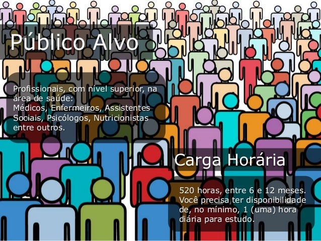 Profissionais, com nível superior, na área de saúde: Médicos, Enfermeiros, Assistentes Sociais, Psicólogos, Nutricionistas entre outros.