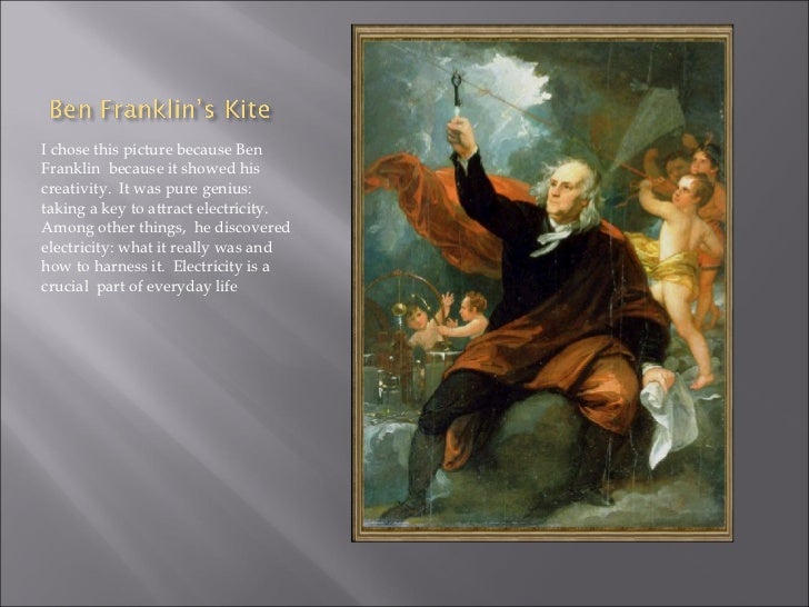 <ul><li>I chose this picture because Ben Franklin  because it showed his creativity.  It was pure genius: taking a key to ...
