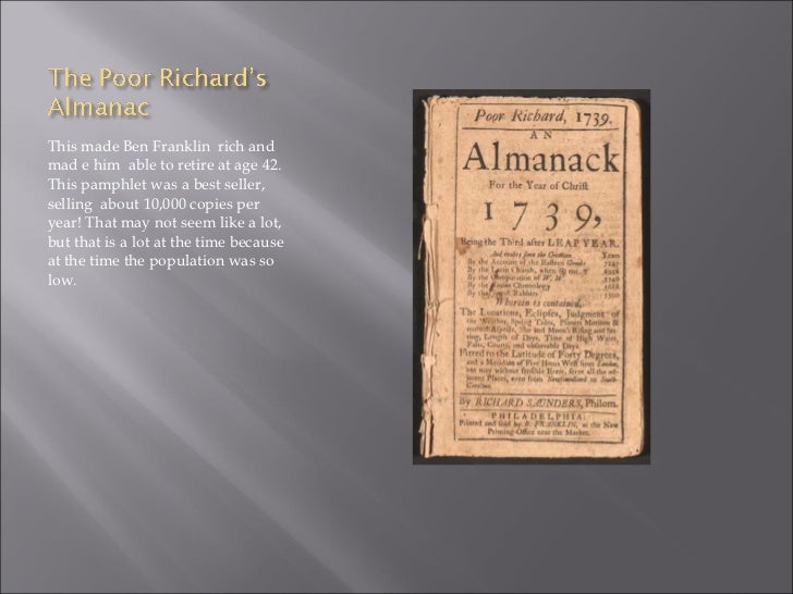 <ul><li>This made Ben Franklin  rich and mad e him  able to retire at age 42.  This pamphlet was a best seller, selling  a...