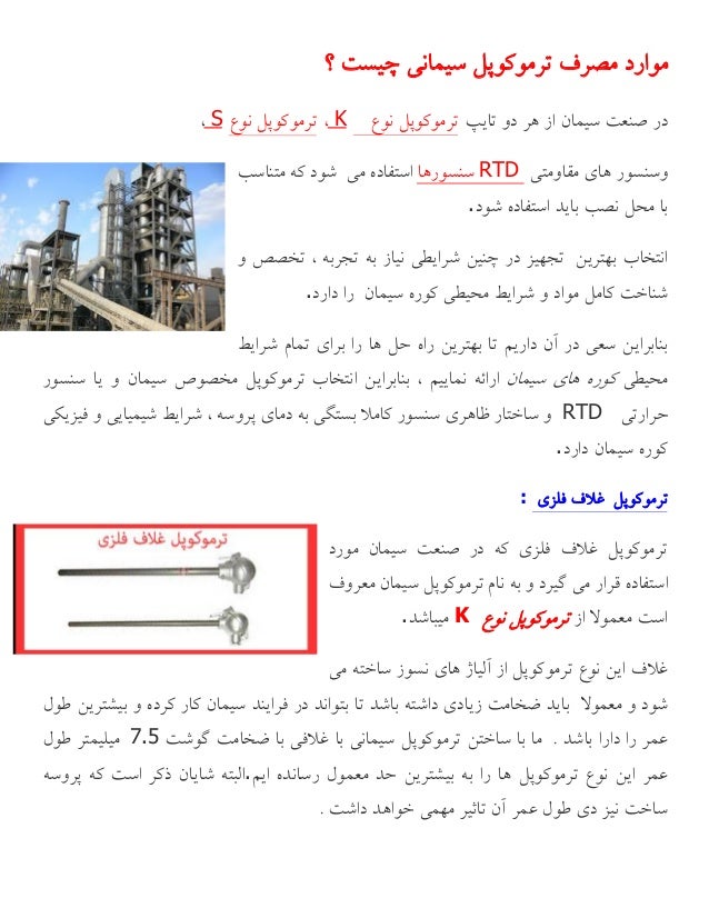 در صنعت سیمان از هر دو نوع تایپ ترموکوپل ها و سنسورهای حرارتی استفاده میشود.