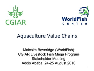 Aquaculture Value Chains Malcolm Beveridge (WorldFish) CGIAR Livestock Fish Mega Program Stakeholder Meeting Addis Ababa, 24-25 August 2010