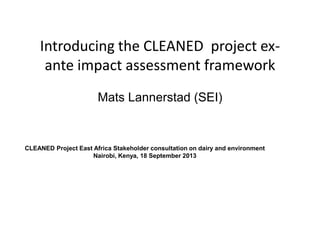 Presented by Mats Lannerstad (SEI) at the CLEANED Project East Africa Stakeholder Consultation on Dairy and Environment Nairobi, Kenya, 18 September 2013