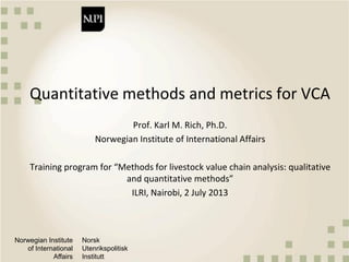 Presented by Karl M. Rich at the Training program for “Methods for livestock value chain analysis: Qualitative and quantitative methods”, ILRI, Nairobi, 2 July 2013