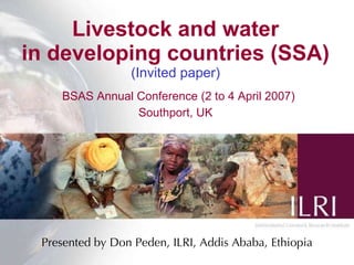Livestock and water in developing countries (SSA) (Invited paper) BSAS Annual Conference (2 to 4 April 2007) Southport, UK Presented by Don Peden, ILRI, Addis Ababa, Ethiopia