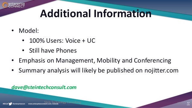 This year's Enterprise Connect RFP workshop will be dedicated to Unified Communications as a Service (UCaaS) offerings, in "pure" form and in a hybrid with premises systems. Workshop leader Dave Stein of Stein Technology Group consulting will once again craft a mock RFP for communications service for a medium-sized enterprise, but this year will seek responses from UCaaS providers, so as to provide a deep dive on the state of the art in UCaaS features, functions, and pricing. Enterprise Connect Orlando 2016 attendees will receive both a detailed view on how to write an RFP for UCaaS services, and will see the responses provided by major players in this space. You'll come away from this workshop with a rich supply of documentation, as well as a detailed description and discussion that will help you understand how mature today's UCaaS services are; how they stack up against each other; to what extent they may transform your communications environment; and how providers can support migration and hybrid strategies.