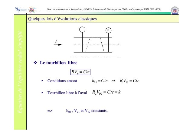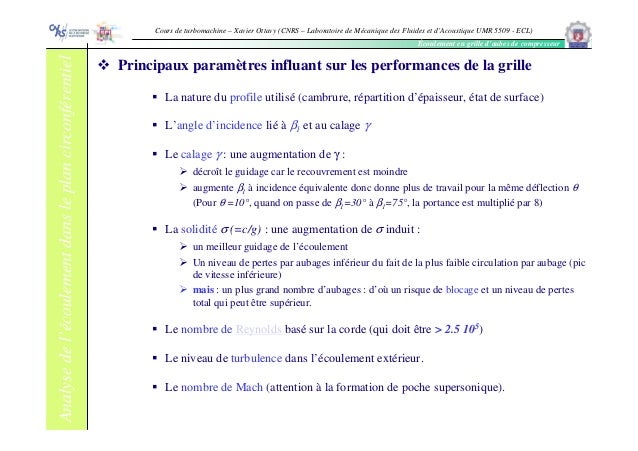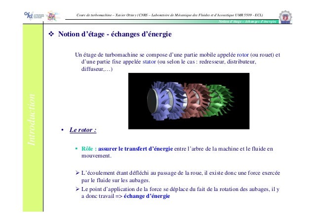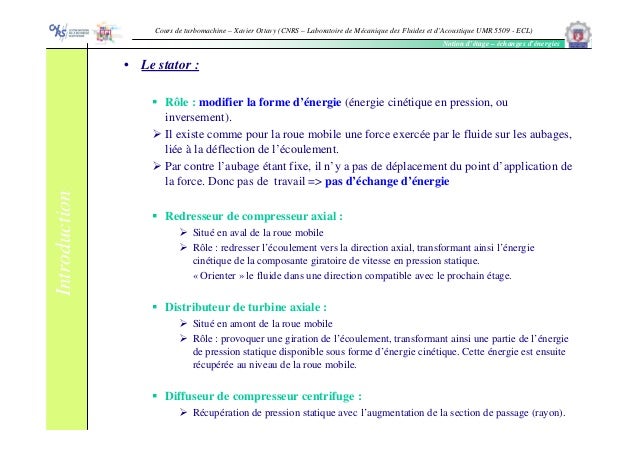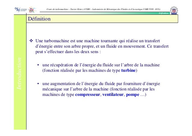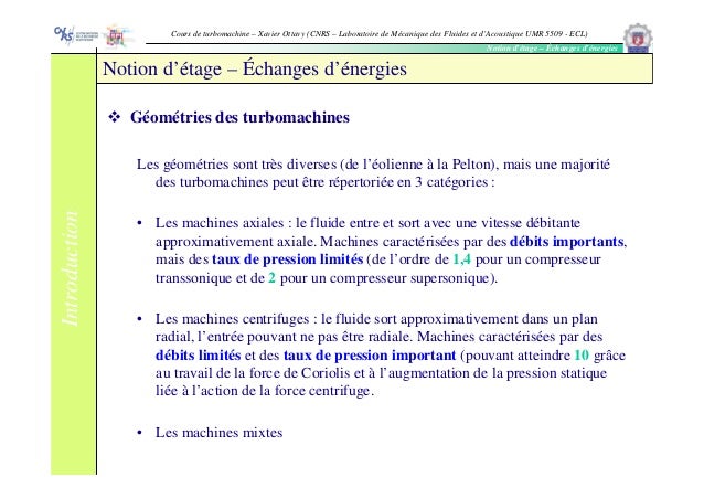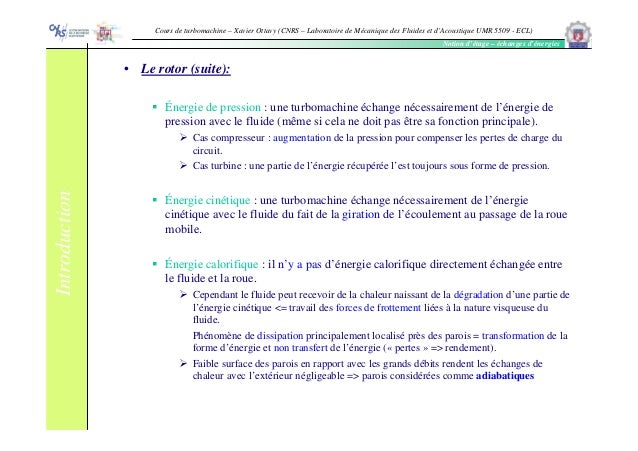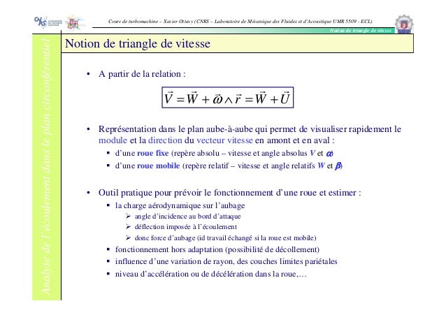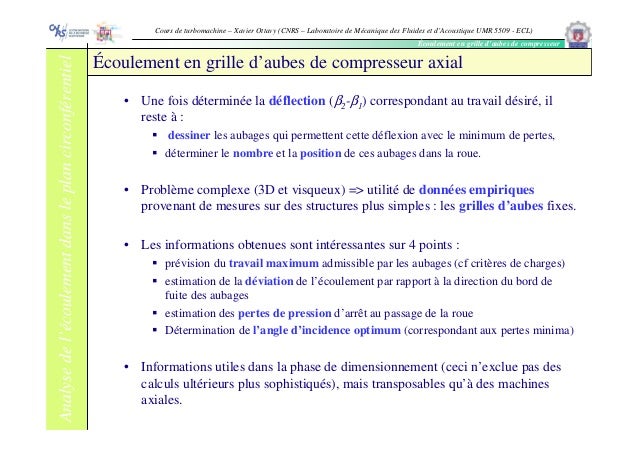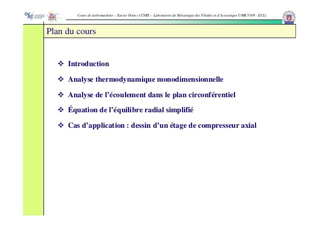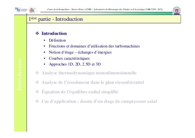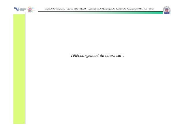 1. 1. Cours de turbomachine – Xavier Ottavy (CNRS – Laboratoire de Mécanique des Fluides et d’Acoustique UMR 5509 - ECL) Cours de turbomachine à fluide compressible Xavier OTTAVY CNRS UMR 5509 Laboratoire de Mécanique des Fluides et d’Acoustique à l’École Centrale de Lyon
