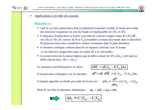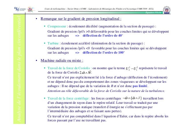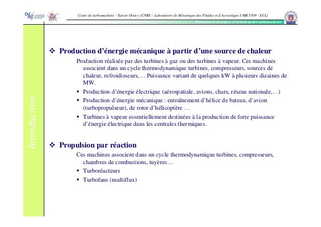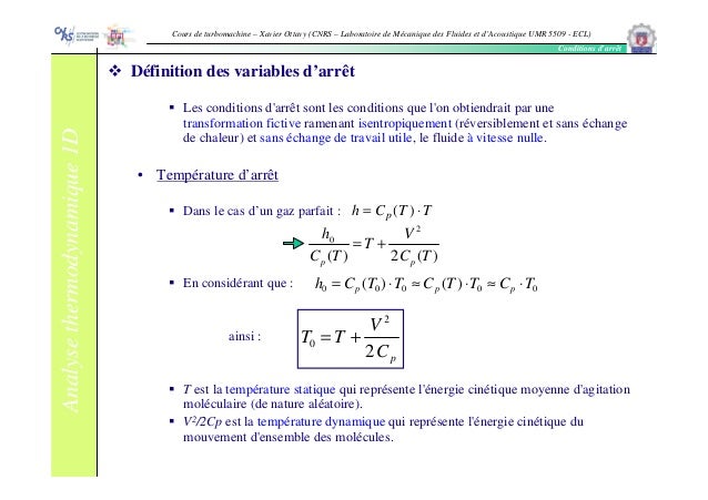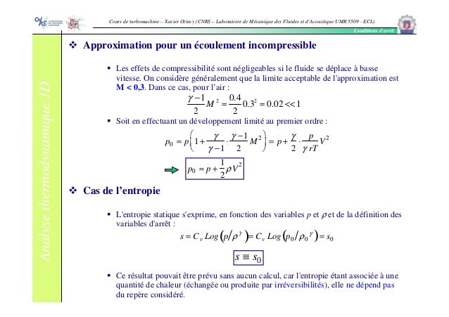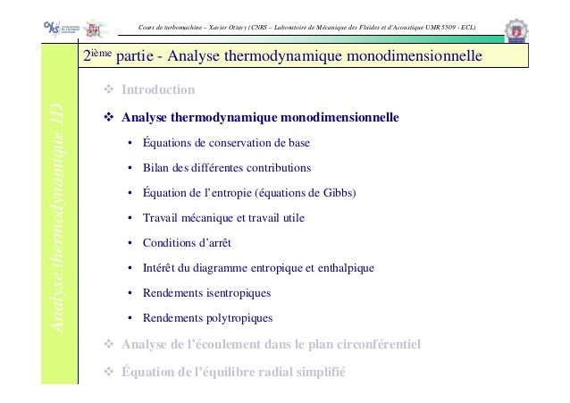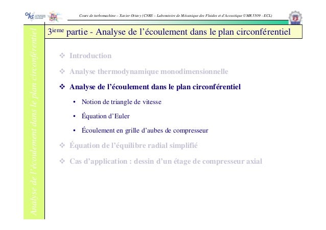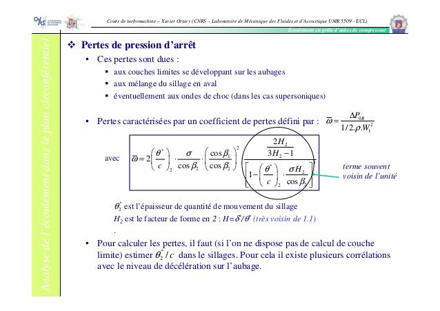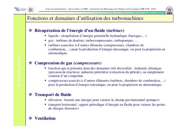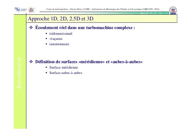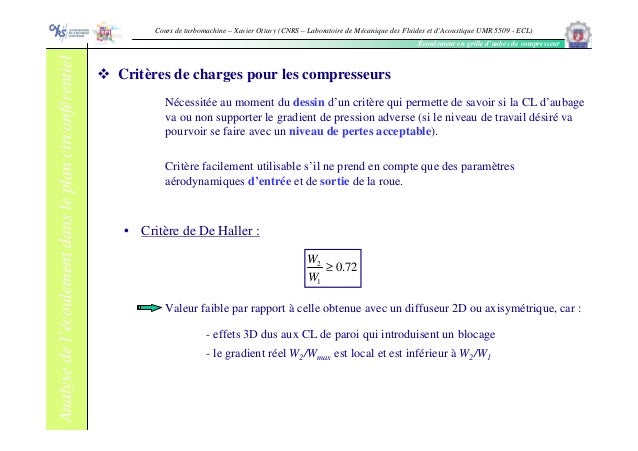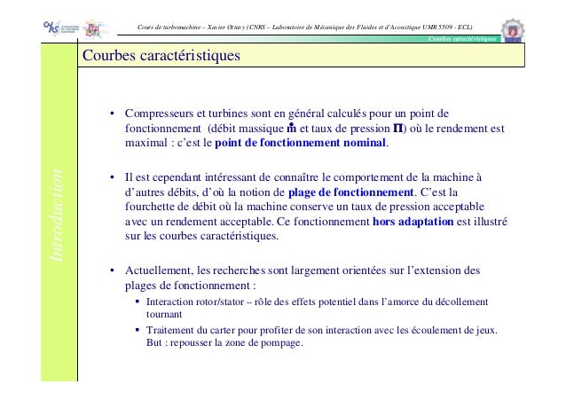 1. 1. Cours de turbomachine – Xavier Ottavy (CNRS – Laboratoire de Mécanique des Fluides et d’Acoustique UMR 5509 - ECL) Cours de turbomachine à fluide compressible Xavier OTTAVY CNRS UMR 5509 Laboratoire de Mécanique des Fluides et d’Acoustique à l’École Centrale de Lyon